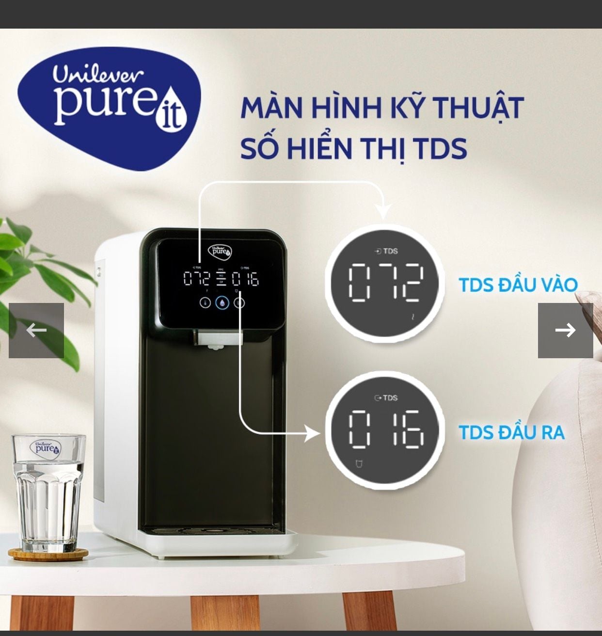 | Công nghệ Smart Hot: | 3 cấp độ nhiều: Nhiệt độ thường, Ấm 45°C, Nóng 93°C (dung sai 5°C) |